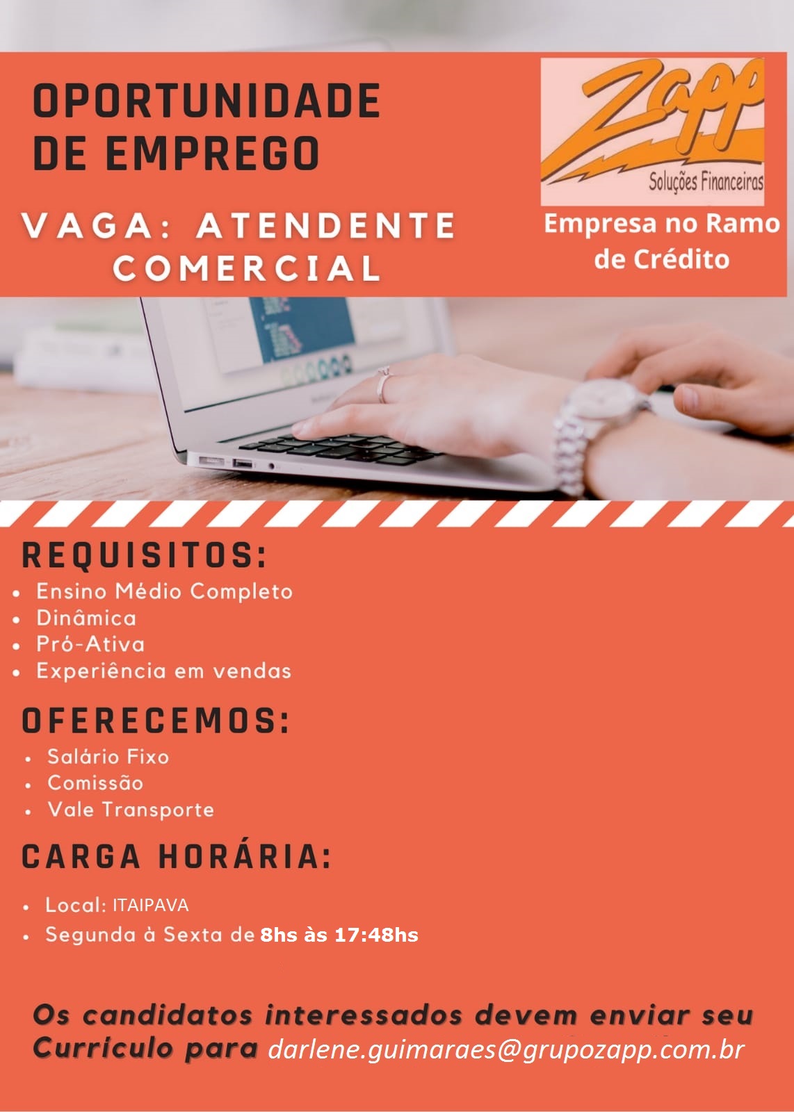 Atendente Comercial: Contrata-se para venda de empréstimo consignado e pessoal.