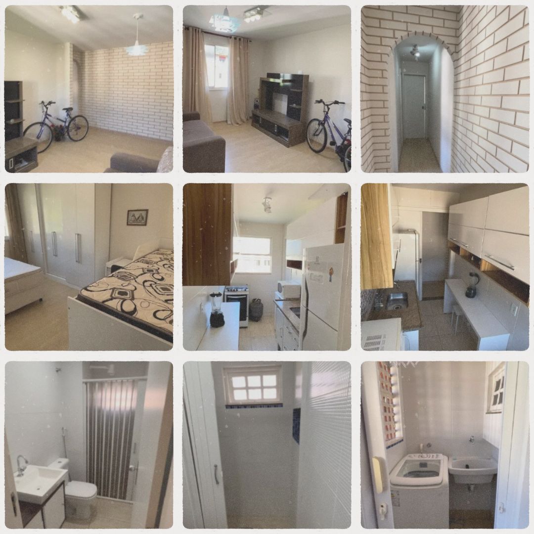 Sala - sofá cama, rack, mesa de jantar, Cozinha - armários superiores, armário inferior, fogão, gás encanado