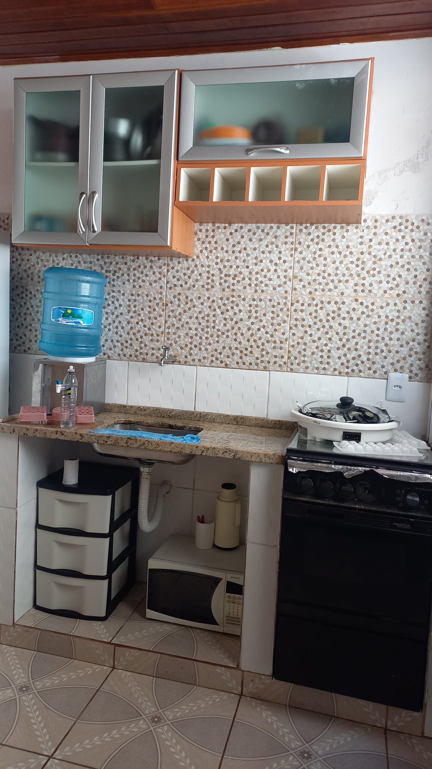 Casa em condomínio, estilo balancinho, possui 2 quartos, banheiro Rolling, na parte de cima, na parte debaixo, sala e cozinha estilo americano, banheiro, área de serviço com ducha.