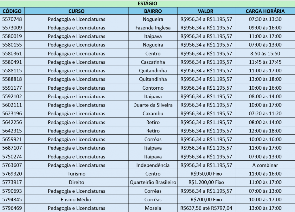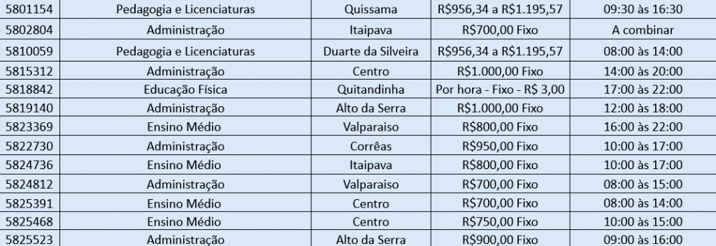 Os interessados devem se candidatar pelo portal CIEE Rio – Centro de Integração Empresa Escola (cieerj.org.br) através do código da vaga informado. Em caso de dúvidas entrar em contato pelo telefone (24) 2243-9706.