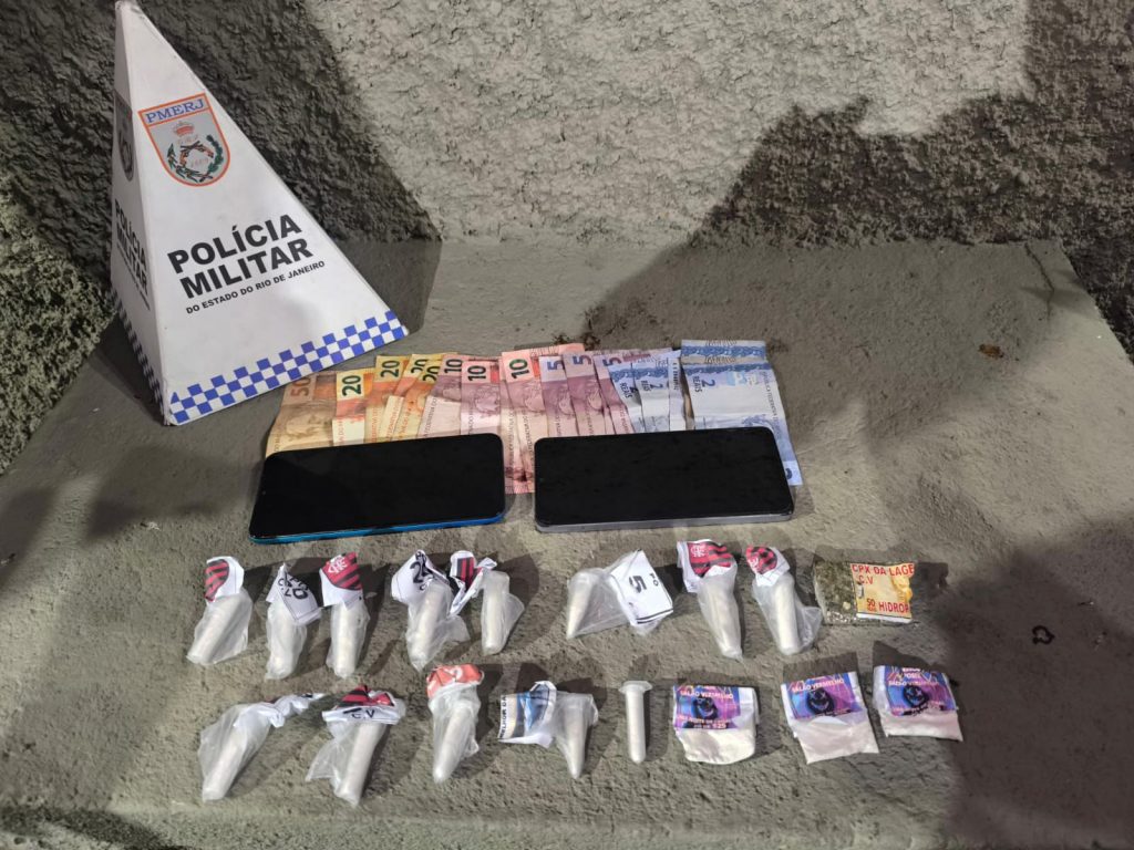 Durante a ação, os agentes apreenderam 16 embalagens de cocaína, 1 tablete de maconha, R$202,00 em espécie e dois celulares. Um terceiro homem, de 20 anos, foi autuado por posse de entorpecente e liberado após prestar depoimento.